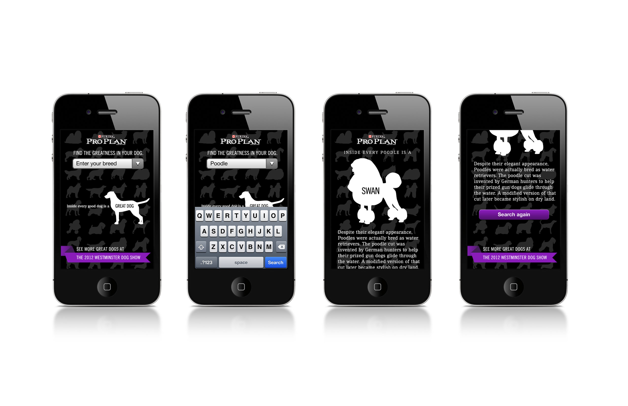 The Great Dogs mobile site offered the ability to find out the greatness of dogs anywhere—at the show, watching at home, or curious about a breed while at the local dog park.