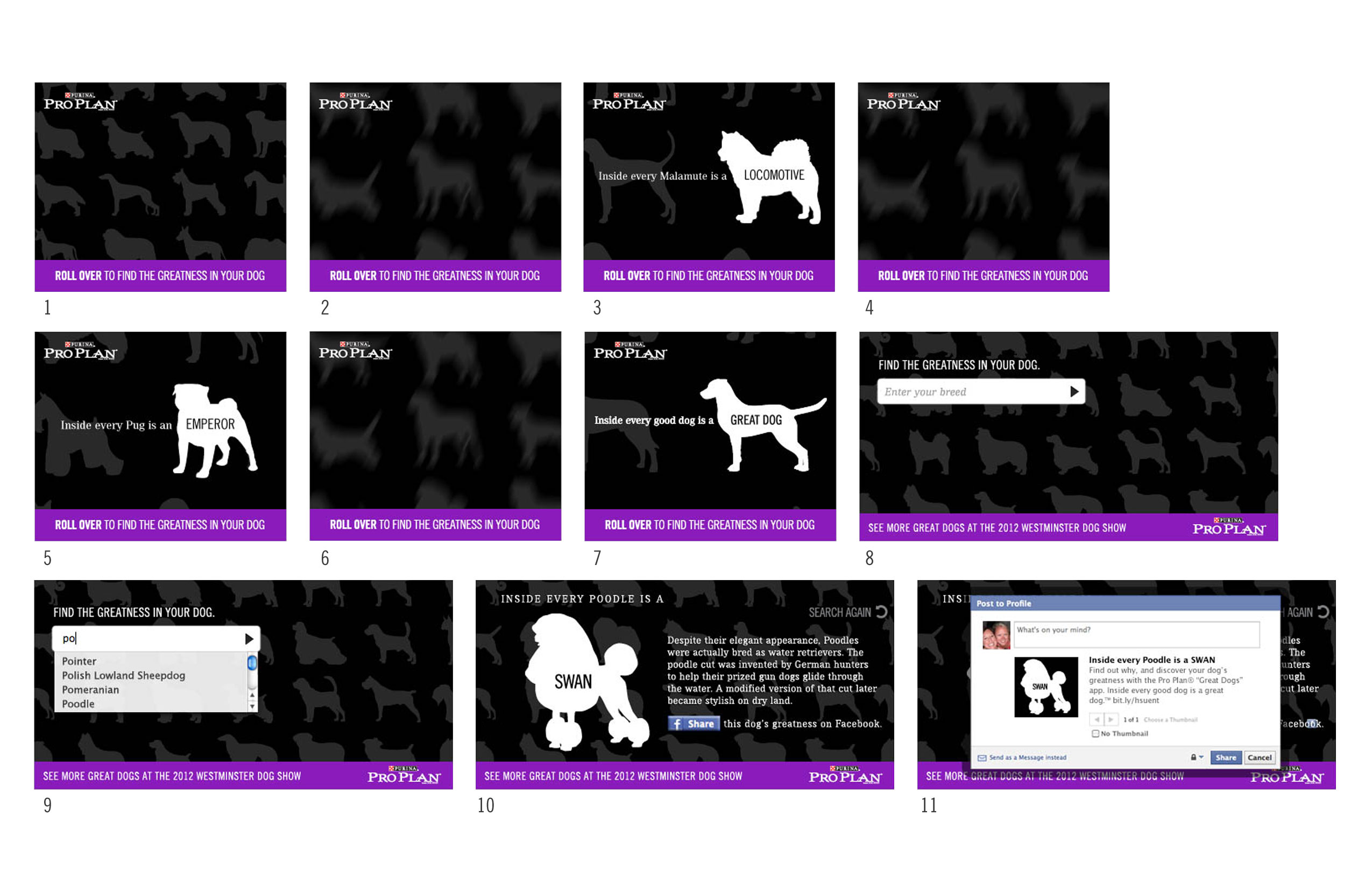 Targeted display ads designed to let you discover the greatness in every dog breed, then share it directly to Facebook—functionality never before seen in a banner at the time.