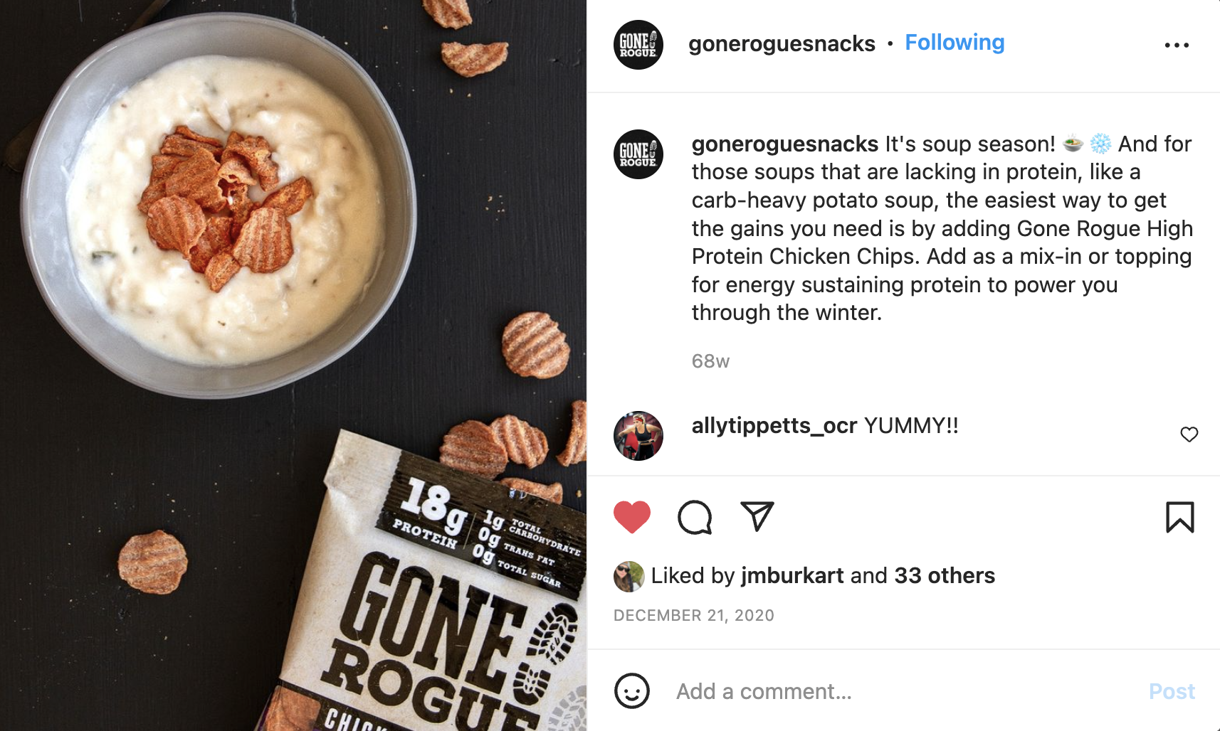 Full brand relaunch campaign for Gone Rogue, brand uniquely suited to those who don’t want to sacrifice bold taste, a satisfying crunch, and high protein. We partnered with US Women’s Soccer star and Olympic Gold Medalist Carli Lloyd for the launch, lifestyle influencers to educate, and the Spartan Races to get it in the hands of the most passionate protein seekers. TV/social/digital/experiential.