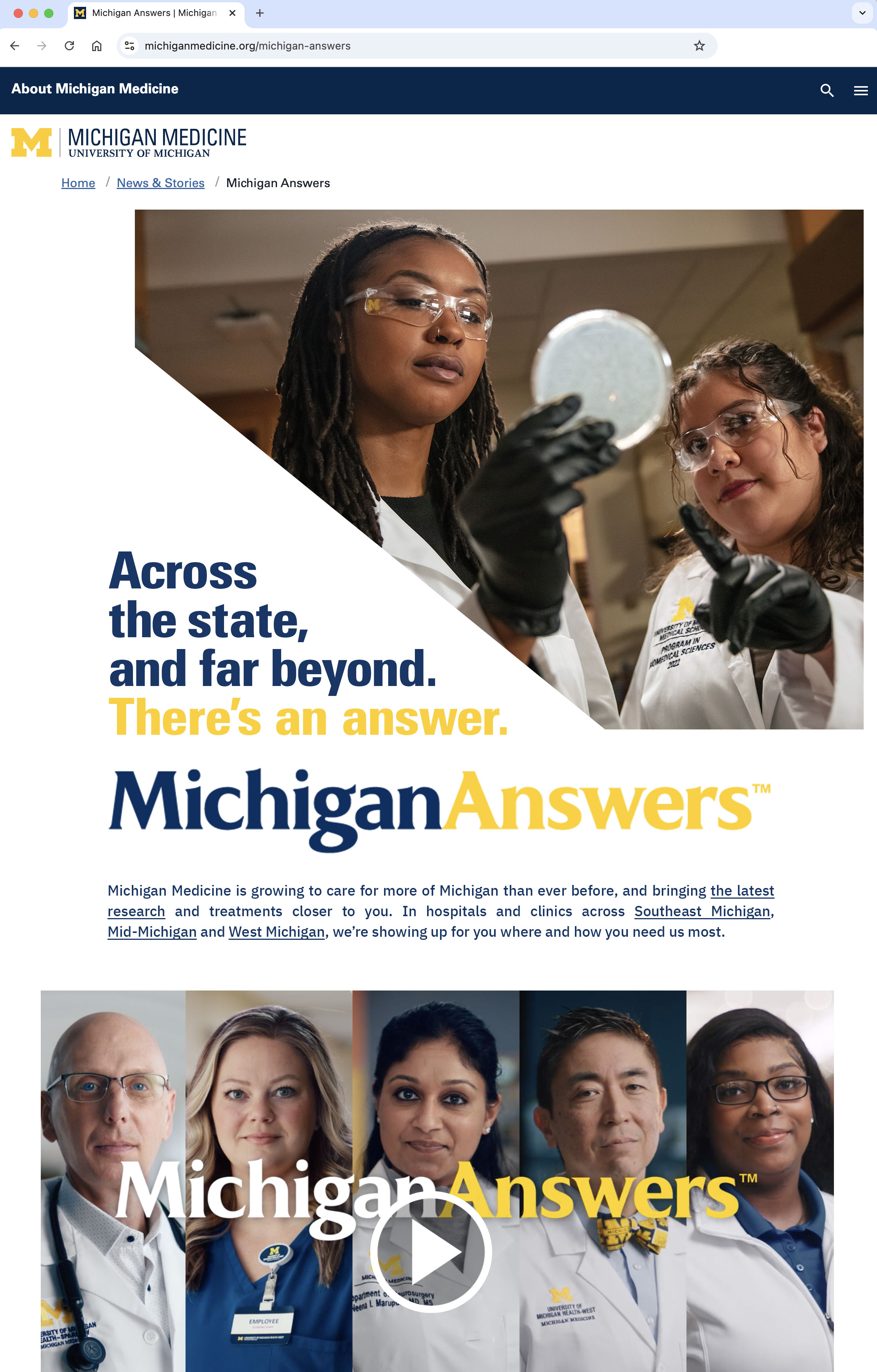 Known for being a destination for life-changing procedures and world-class research in Ann Arbor, Michigan Medicine is expanding so that communities across Michigan get more than care—they get the Answers only Michigan Medicine can provide.